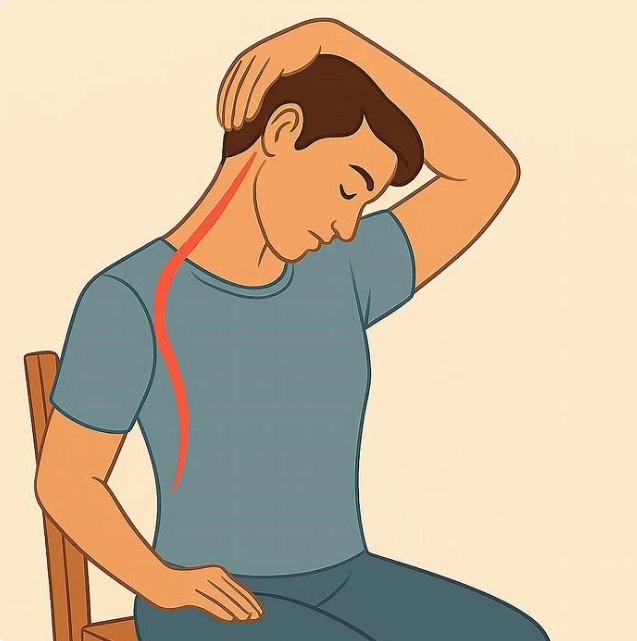 📌 2. 경추 신전근 스트레칭 (Neck Extensor Stretch): 뒷목 시원~하게 늘리기!