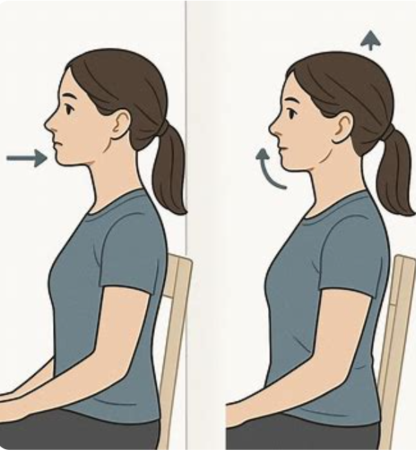 📌 1. 턱 당기기 운동 (Chin Tuck): 굽은 목 다시 펴주기!