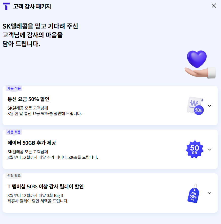 - 8월 통신요금 50% 할인