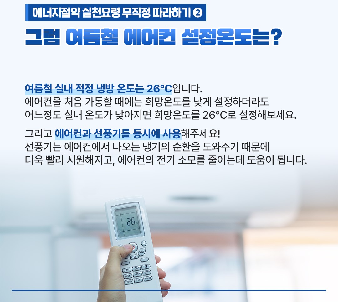 1. 에어컨 온도는 26도 이상으로 설정하기