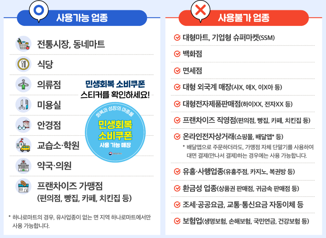 민생회복 소비쿠폰은 **‘소상공인 매장’**을 중심으로 사용이 가능합니다.