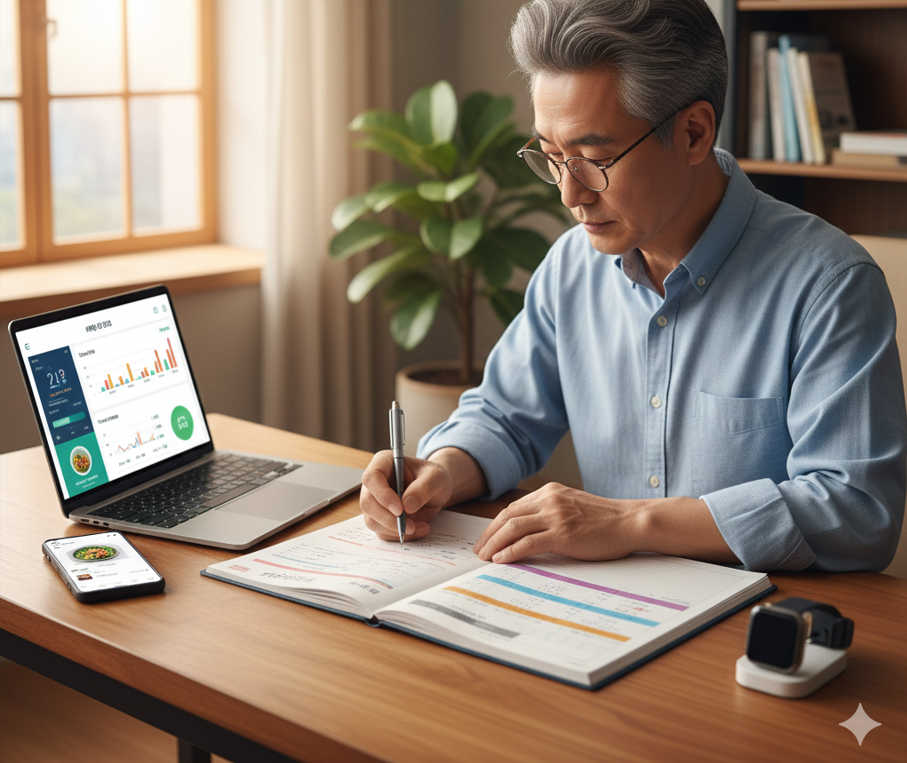 - 하루 활동량, 식습관, 운동 기록 등을 꾸준히 기록하고 확인하는 습관을 들여보세요.
