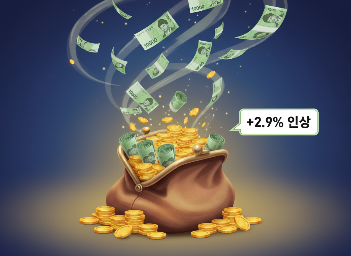 - 인상률 2.9%:최근 몇 년간 높은 인상률(2022년 5.05%, 2023년 5.0%)에 비하면 낮은 수준으로 느껴질 수도 있지만, 역대 최저 수준이었던 2021년(1.5%)보다는 높게 결정되었어요.