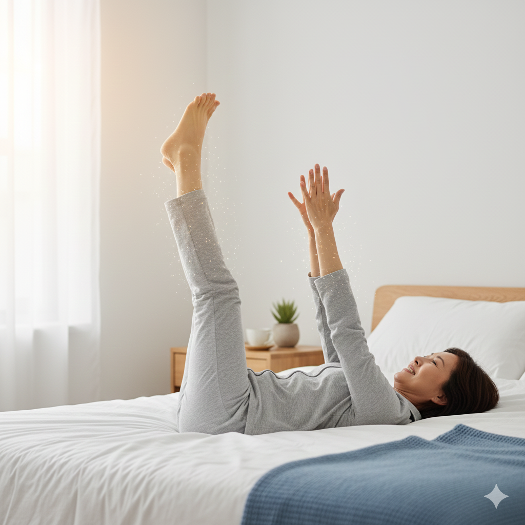 2) [2단계] 누워서 하는 간단한 사지 흔들기: 미세 혈액 순환 촉진